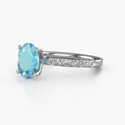 The ring shown above is called the Crystal OVL 2. We call this type of ring a pavé solitaire ring because it has one center gemstone and a band that is also pave set with gemstones. The platinum engagement ring is set with a oval 9x7 mm blue topaz center stone and the band is pave set with lab-grown diamond gemstones. Each jewel is made just for you by our master goldsmiths in our own studio.This exclusive platinum pavé solitaire engagement ring has an exquisite oval blue topaz center stone. To further accentuate the center stone, the band is fully set with more lab grown diamonds. Its open prong setting allows light to strike the blue topaz from various angles and this adds sparkle to your blue topaz ring. The photo shown above depicts the goldsmith's carefully handcrafted details of the ring. The high positioning of the center stone is truly eye-catching. The perfect engagement ring for the crown jewel of your life! By using a combination of the latest modern techniques, combined with ancient crafting, we can make all our engagement rings in our own studio. Each jewel is made to order. This is advantageous because we can offer you a price you won't find anywhere else.Our team adds new designs to our online collection daily. Our designers and goldsmiths work together in creating the best design. We strive to offer a diverse collection of jewels. Perhaps you have a specific jewel design in mind. One you came across somewhere. Please contact us for a free consultation. We will make you an offer, based on a fair price/ quality ratio, that will baffle you.To make it easier for you, we offer a 30 day return policy. Check our terms and conditions.