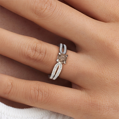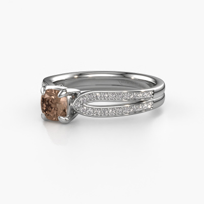 The ring shown above is called the Antonia cus 2. We call this type of ring a pavé solitaire ring because it has one center gemstone and a band that is also pave set with gemstones. The platinum engagement ring is set with a cushion 0.70 crt brown diamond center stone and the band is pave set with lab-grown diamond gemstones. Each jewel is made just for you by our master goldsmiths in our own studio.This fantasy platinum pavé solitaire engagement ring has an exquisite cushion brown diamond center stone. To further accentuate the center stone, the band is fully set with more lab grown diamonds. Its open prong setting allows light to strike the brown diamond from various angles and this adds sparkle to your brown diamond ring. The photo shown above depicts the goldsmith's carefully handcrafted details of the ring. The high positioning of the center stone is truly eye-catching. The perfect engagement ring for the crown jewel of your life! By using our modern techniques, we can design and customize the finest quality jewels with the utmost care for you. Our engagement rings are always priced 30 percent lower than other jewelers. We make engagement rings to order so we don't have to maintain a large stock. If you have a certain budget, we are more than happy to advice you accordingly.Have you found a specific engagement ring somewhere which you would like to give to your loved one? Please feel free to express your wishes to our jewel designers because we would be honored to turn your design into a fantasy engagement ring. You can follow the development of your ring design because we use 3D drawings. This gives you a realistic preview of how your design will look. You can also preorder a dummy. A dummy is a plastic ring, which can be shaped according your ring design. You can try it on and check if its width and size are suitable for you. We will gladly send you a non-binding offer, based on a fair price/ quality ratio. It will amaze you, considering the quality of the ring and gemstones.To make it easier for you, we offer a 30 day return policy. Check our terms and conditions.