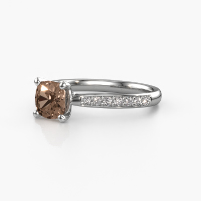 The ring shown above is called the Mignon cus 2. We call this type of ring a pavé solitaire ring because it has one center gemstone and a band that is also pave set with gemstones. The platinum engagement ring is set with a cushion 1.30 crt brown diamond center stone and the band is pave set with lab-grown diamond gemstones. Each jewel is made with passion and love by one of our master goldsmiths.This exclusive platinum pavé solitaire engagement ring has an exquisite cushion brown diamond center stone. To further accentuate the center stone, the band is fully set with more lab grown diamonds. Its open prong setting allows light to strike the brown diamond from various angles and this adds sparkle to your brown diamond ring. The photo shown above depicts the goldsmith's carefully handcrafted details of the ring. The high positioning of the center stone is truly eye-catching. The perfect engagement ring for the crown jewel of your life! After receiving your order, our goldsmiths will start the creative process of making your Mignon cus 2 engagement ring. We don't keep stock. This is advantageous because these costs will not be passed on to you. Therefore, we can offer jewelry at exceptionally low prices.Our team adds new designs to our online collection daily. Our designers and goldsmiths work together in creating the best design. We strive to offer a diverse collection of jewels. Perhaps you have a specific jewel design in mind. One you came across somewhere. Please contact us for a free consultation. We will make you an offer, based on a fair price/ quality ratio, that will baffle you.To make it easier for you, we offer a 30 day return policy. Check our terms and conditions.