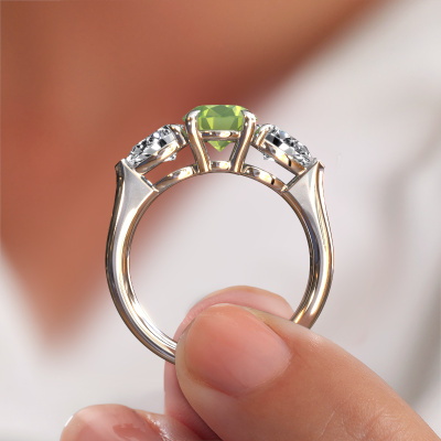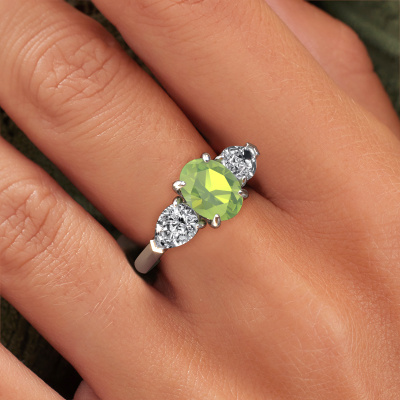 This platinum ring is called Carma OVL and is set with 9x7 mm peridot. Does your girlfriend fancy exclusive jewelry? Or would you like to show her that she deserves the finest jewelry? This platinum ring is pure craftsmanship, love and passion combined with the latest techniques coming together in perfect harmony. It requires a keen eye, patience and a skillful hand to mold this ring into perfection. Just the job for our expert goldsmith! The peridot set gemstones gives this platinum ring an extra glamorous appearance. Customize the style of the stylish engagement ring to her liking with a wide variety of precious metals and gemstones which you select. That is how you create a unique ring for the most exclusive woman in your life! This jewel is made just for you by our master goldsmiths in our own studio.By using a combination of the latest modern techniques, combined with ancient crafting, we can make all our engagement rings in our own studio. Each jewel is made to order. This is advantageous because we can offer you a price you won't find anywhere else.Our designers and goldsmiths work together each day, creating new jewels. Perhaps you have found a nice exclusive engagement ring somewhere, which can be used to customize your unique ring. Please feel free to contact us. We will make you an offer, based on a fair price/ quality ratio, which will amaze you.To make it easier for you, we offer a 30 day return policy. Check our terms and conditions.
