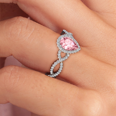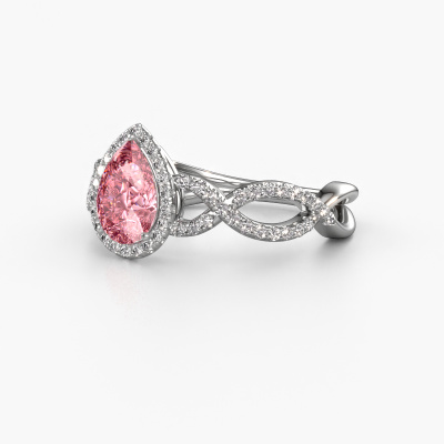 This platinum ring is called Dionne pear and is set with 7x5 mm pink lab grown diamond. Does your girlfriend fancy exclusive jewelry? Or would you like to show her that she deserves the finest jewelry? This platinum ring is pure craftsmanship, love and passion combined with the latest techniques coming together in perfect harmony. It requires a keen eye, patience and a skillful hand to mold this ring into perfection. Just the job for our expert goldsmith! The pink lab grown diamonds set gemstones gives this platinum ring an extra glamorous appearance. Customize the style of the twist engagement ring to her liking with a wide variety of precious metals and gemstones which you select. That is how you create a unique ring for the most exclusive woman in your life! This jewel is created to add sparkle to your finger, each jewel is lovingly made by hand by our goldsmiths.Are you on a budget? Please feel free to contact us, so we can go discuss your options. We offer our engagement rings at guaranteed best price, because we make them to order. You won't find such a price anywhere else!Different styles of new rings are made daily by our team. Perhaps you have found a pavé solitaire engagement ring somewhere. One you would like to give to your loved one. Please feel free to share your thoughts and design with our jewel designers. We would love to turn your design into a exclusive engagement ring. You can follow the development of your ring design because we use very detailed 3D drawings. On top of that, you can order a dummy of the design. A dummy is a plastic ring, which can be shaped according your ring design. You can try it on and check if the engagement ring is up to standard. We will gladly send you a non-binding offer, based on a fair price/ quality ratio. The offer will baffle you, considering the quality of the ring and gemstones.To make it easier for you, we offer a 30 day return policy. Check our terms and conditions.