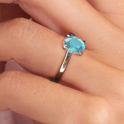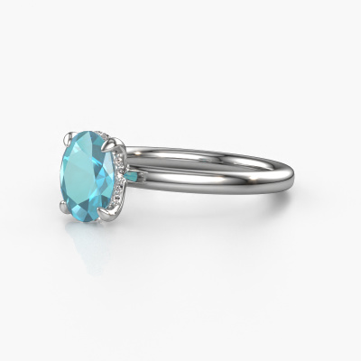 This platinum ring is called Simone OVL 2 and is set with blue topaz. Are you in the market for a unique platinum engagement ring with a trendy appearance? Then this ring is perfect for you. Simply customize to your or her liking. This contemporary graceful engagement ring is set with exquisite blue topaz. It has been carefully selected because your engagement ring must be adorned with nothing but the most beautiful gemstone. Our expert goldsmith will create your ring in our own studio where the blue topaz will be set with great care. The ring will then be polished to perfection to give it that extra sparkle. The perfect ring for your significant other! Because we design and deliver our own rings, we can offer you a engagement ring at a price you won't find anywhere else. A ring is made to order, which helps prevent excess supplies, so we can make you a great price offer. We understand it feels risky, buying your engagement ring online, but we will gladly assist in the designing process, taking your budget into consideration.Do you have a specific ring in mind? One you came across somewhere. Please feel free to tell us your wishes and we will turn your design into a unique engagement ring. You can follow the development of your ring design because we use 3D drawings. This gives you a realistic preview of your design. We will gladly send you a non-binding offer, based on a fair price/ quality ratio. It will amaze you.To make it easier for you, we offer a 30 day return policy. Check our terms and conditions.