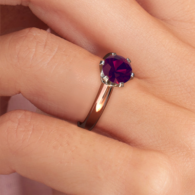 The ring shown above is called the Tiffy 1, we call this a solitaire ring because it contains a single gemstone. The engagement ring is made in 14 Carat rose gold and has a round rhodolite of 7 mm. The cool thing about our configurator is that you can compile your own piece of jewelry, into a completely personalized one. This solitaire ring is crafted in the precious metals rose gold with white gold, but of course you are free to pick your own colors. Each piece of jewelry is made just for you, with attention to detail and design.The solitaire ring is a special type of engagement ring. Its open prong setting allows light to strike the gemstone from various angles. This classic engagement ring is a stunning eye-catcher because of the high positioning of the gemstone. In order for you to commemorate your proposal with a unique ring, we carefully adorn this solitaire ring by hand. The love of your life deserves nothing but the best. By using our modern techniques, we can design and customize the finest quality jewels with the utmost care for you. Our engagement rings are always priced 30 percent lower than other jewelers. We make engagement rings to order so we don't have to maintain a large stock. If you have a certain budget, we are more than happy to advice you accordingly.Our designers and goldsmiths work together each day, creating new jewels. Perhaps you have found a nice classic engagement ring somewhere, which can be used to customize your unique ring. Please feel free to contact us. We will make you an offer, based on a fair price/ quality ratio, which will amaze you.To make it easier for you, we offer a 30 day return policy. Check our terms and conditions.
