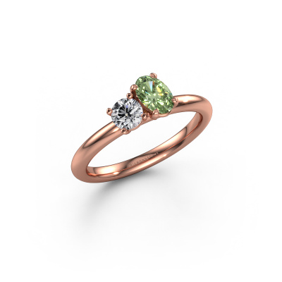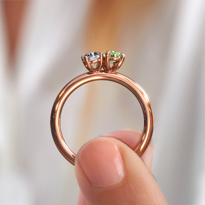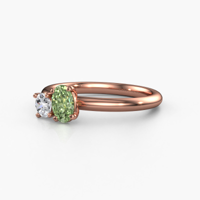 This 14 Carat rose gold ring is called Toi et Moi OVL-RND and is set with green lab grown diamond. Are you in the market for a unique rose gold engagement ring with a trendy appearance? Then this ring is perfect for you. Simply customize to your or her liking. This chic graceful engagement ring is set with exquisite green lab grown diamond. It has been carefully selected because your engagement ring must be adorned with nothing but the most beautiful gemstone. Our expert goldsmith will create your ring in our own studio where the green lab grown diamond will be set with great care. The ring will then be polished to perfection to give it that extra sparkle. The perfect ring for your significant other! Are you on a budget? Please feel free to contact us, so we can go discuss your options. We offer our engagement rings at guaranteed best price, because we make them to order. You won't find such a price anywhere else!Have you found a specific engagement ring somewhere which you would like to give to your loved one? Please feel free to express your wishes to our jewel designers because we would be honored to turn your design into a chic engagement ring. You can follow the development of your ring design because we use 3D drawings. This gives you a realistic preview of how your design will look. You can also preorder a dummy. A dummy is a plastic ring, which can be shaped according your ring design. You can try it on and check if its width and size are suitable for you. We will gladly send you a non-binding offer, based on a fair price/ quality ratio. It will amaze you, considering the quality of the ring and gemstones.To make it easier for you, we offer a 30 day return policy. Check our terms and conditions.