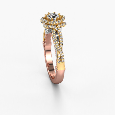 This 14 Carat rose gold ring is called Lysanne and is set with 0.750 crt diamond. This filigree rose gold engagement ring is a true work of art! A beautifully adorned design of intricate wires. With dedication, patience and the utmost precision, our expert goldsmith will design a ring just for you. The adornment of small wiring is crafted to perfection by hand. It's a lengthy process which includes welding, crafting and polishing until our Goldsmiths are completely satisfied with the result: a perfect eye-catching ring that makes her shine with delight. Therefore the vintage filigree engagement ring is an extraordinary gift to bestow upon the love of your life. A handmade one-of-a-kind personalized ring, to be given to that special someone on that special moment when you pop the question. Isn't that wonderful? This piece of jewelry is made by a team of passionate goldsmiths and jewel designers. This will make your crown jewel truly eye-catching.After receiving your order, our goldsmiths will start the creative process of making your Lysanne engagement ring. We don't keep stock. This is advantageous because these costs will not be passed on to you. Therefore, we can offer jewelry at exceptionally low prices.Have you found a specific engagement ring somewhere which you would like to give to your loved one? Please feel free to express your wishes to our jewel designers because we would be honored to turn your design into a vintage engagement ring. You can follow the development of your ring design because we use 3D drawings. This gives you a realistic preview of how your design will look. You can also preorder a dummy. A dummy is a plastic ring, which can be shaped according your ring design. You can try it on and check if its width and size are suitable for you. We will gladly send you a non-binding offer, based on a fair price/ quality ratio. It will amaze you, considering the quality of the ring and gemstones.To make it easier for you, we offer a 30 day return policy. Check our terms and conditions.