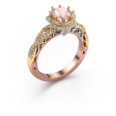 This 14 Carat rose gold ring is called Lysanne and is set with 6.5 mm morganite champagne. This filigree rose gold engagement ring is a true work of art! A beautifully adorned design of intricate wires. With dedication, patience and the utmost precision, our expert goldsmith will design a ring just for you. The adornment of small wiring is crafted to perfection by hand. It's a lengthy process which includes welding, crafting and polishing until our Goldsmiths are completely satisfied with the result: a perfect eye-catching ring that makes her shine with delight. Therefore the vintage filigree engagement ring is an extraordinary gift to bestow upon the love of your life. A handmade one-of-a-kind personalized ring, to be given to that special someone on that special moment when you pop the question. Isn't that wonderful? This piece of jewelry is made by a team of passionate goldsmiths and jewel designers. This will make your crown jewel truly eye-catching.After receiving your order, our goldsmiths will start the creative process of making your Lysanne engagement ring. We don't keep stock. This is advantageous because these costs will not be passed on to you. Therefore, we can offer jewelry at exceptionally low prices.Have you found a specific engagement ring somewhere which you would like to give to your loved one? Please feel free to express your wishes to our jewel designers because we would be honored to turn your design into a vintage engagement ring. You can follow the development of your ring design because we use 3D drawings. This gives you a realistic preview of how your design will look. You can also preorder a dummy. A dummy is a plastic ring, which can be shaped according your ring design. You can try it on and check if its width and size are suitable for you. We will gladly send you a non-binding offer, based on a fair price/ quality ratio. It will amaze you, considering the quality of the ring and gemstones.To make it easier for you, we offer a 30 day return policy. Check our terms and conditions.