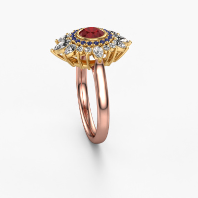 This 14 Carat rose gold ring is called Tianna and is set with ruby. An extraordinary rose gold vintage ring. One that will surely make the love of your life shine like a diamond! That is what we hope to achieve. This vintage engagement ring is set with exquisite ruby. Whichever gemstone you choose from our selection, is up to you. The gemstone is selected with great care because we believe your engagement ring must be adorned with nothing but the most beautiful gemstone. Wouldn't you agree? Our expert goldsmith will design your ring in our own artisan studio, where the ruby will be set with great precision. The ring will then be polished till it is absolutely perfect. Nothing but the best for the love of your life! This jewel is made just for you by our master goldsmiths in our own studio.Because we design and deliver our own rings, we can offer you a engagement ring at a price you won't find anywhere else. A ring is made to order, which helps prevent excess supplies, so we can make you a great price offer. We understand it feels risky, buying your engagement ring online, but we will gladly assist in the designing process, taking your budget into consideration.Our team adds new designs to our online collection daily. Our designers and goldsmiths work together in creating the best design. We strive to offer a diverse collection of jewels. Perhaps you have a specific jewel design in mind. One you came across somewhere. Please contact us for a free consultation. We will make you an offer, based on a fair price/ quality ratio, that will baffle you.To make it easier for you, we offer a 30 day return policy. Check our terms and conditions.
