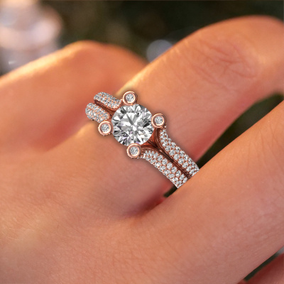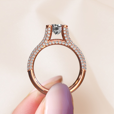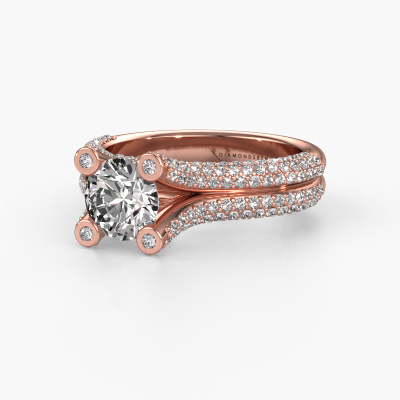 This 14 Carat rose gold ring is called Stefanie 2 and is set with 2.00 crt diamond. Does your girlfriend fancy exclusive jewelry? Or would you like to show her that she deserves the finest jewelry? This rose gold ring is pure craftsmanship, love and passion combined with the latest techniques coming together in perfect harmony. It requires a keen eye, patience and a skillful hand to mold this ring into perfection. Just the job for our expert goldsmith! The diamonds set gemstones gives this rose gold ring an extra glamorous appearance. Customize the style of the split band engagement ring to her liking with a wide variety of precious metals and gemstones which you select. That is how you create a unique ring for the most exclusive woman in your life! This jewel is made just for you by our master goldsmiths in our own studio.After receiving your order, our goldsmiths will passionately start the creative process of making your engagement ring in our own studio. Because we don't have a big stockpile, these costs will not be passed on to you. Our pricing is proof of that! We offer top quality jewels at lowest price, guaranteed.Different styles of new rings are made daily by our team. Perhaps you have found a pavé solitaire engagement ring somewhere. One you would like to give to your loved one. Please feel free to share your thoughts and design with our jewel designers. We would love to turn your design into a unique engagement ring. You can follow the development of your ring design because we use very detailed 3D drawings. On top of that, you can order a dummy of the design. A dummy is a plastic ring, which can be shaped according your ring design. You can try it on and check if the engagement ring is up to standard. We will gladly send you a non-binding offer, based on a fair price/ quality ratio. The offer will baffle you, considering the quality of the ring and gemstones.To make it easier for you, we offer a 30 day return policy. Check our terms and conditions.