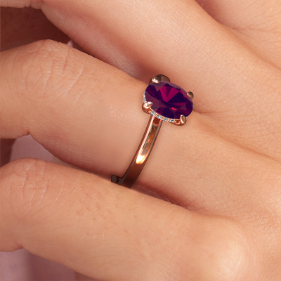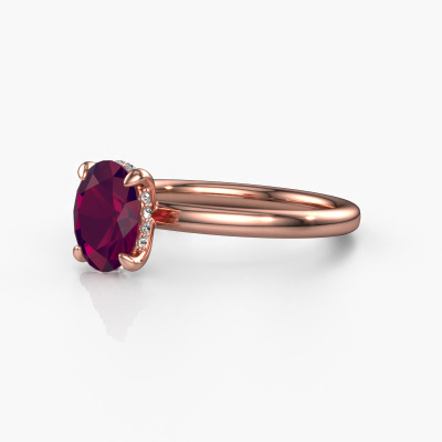 This 14 Carat rose gold ring is called Simone OVL 2 and is set with rhodolite. Are you in the market for a unique rose gold engagement ring with a trendy appearance? Then this ring is perfect for you. Simply customize to your or her liking. This contemporary graceful engagement ring is set with exquisite rhodolite. It has been carefully selected because your engagement ring must be adorned with nothing but the most beautiful gemstone. Our expert goldsmith will create your ring in our own studio where the rhodolite will be set with great care. The ring will then be polished to perfection to give it that extra sparkle. The perfect ring for your significant other! Because we design and deliver our own rings, we can offer you a engagement ring at a price you won't find anywhere else. A ring is made to order, which helps prevent excess supplies, so we can make you a great price offer. We understand it feels risky, buying your engagement ring online, but we will gladly assist in the designing process, taking your budget into consideration.Do you have a specific ring in mind? One you came across somewhere. Please feel free to tell us your wishes and we will turn your design into a unique engagement ring. You can follow the development of your ring design because we use 3D drawings. This gives you a realistic preview of your design. We will gladly send you a non-binding offer, based on a fair price/ quality ratio. It will amaze you.To make it easier for you, we offer a 30 day return policy. Check our terms and conditions.