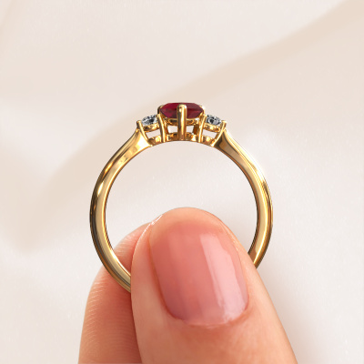 This 14 Carat gold ring is called Lieselot HRT and is set with ruby. How would you describe the style of the love of your life? Does she have a unique sense of style? This stunning graceful gold engagement ring can be custom made to your own or her liking. Our ruby gemstones have been carefully selected because we believe your fantasy engagement ring must be adorned with nothing but the most beautiful gemstone. Don't you agree? This jewel is made just for you, with attention to detail and design.After receiving your order, our goldsmiths will start the creative process of making your Lieselot HRT engagement ring. We don't keep stock. This is advantageous because these costs will not be passed on to you. Therefore, we can offer jewelry at exceptionally low prices.Our designers and goldsmiths work together each day, creating new jewels. Perhaps you have found a nice fantasy engagement ring somewhere, which can be used to customize your unique ring. Please feel free to contact us. We will make you an offer, based on a fair price/ quality ratio, which will amaze you.To make it easier for you, we offer a 30 day return policy. Check our terms and conditions.