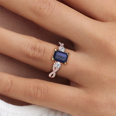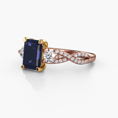 This 14 Carat rose gold ring is called Marilou EME and is set with sapphire. How would you describe the style of the love of your life? Does she have a unique sense of style? This stunning split band rose gold engagement ring can be custom made to your own or her liking. Our sapphire gemstones have been carefully selected because we believe your luxury engagement ring must be adorned with nothing but the most beautiful gemstone. Don't you agree? This jewel is made to shine bright around your finger. Each jewel is hand made with love by our goldsmiths.After receiving your order, our goldsmiths will start the creative process of making your Marilou EME engagement ring. We don't keep stock. This is advantageous because these costs will not be passed on to you. Therefore, we can offer jewelry at exceptionally low prices.Do you have a specific ring in mind? One you came across somewhere. Please feel free to tell us your wishes and we will turn your design into a unique engagement ring. You can follow the development of your ring design because we use 3D drawings. This gives you a realistic preview of your design. We will gladly send you a non-binding offer, based on a fair price/ quality ratio. It will amaze you.To make it easier for you, we offer a 30 day return policy. Check our terms and conditions.