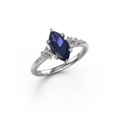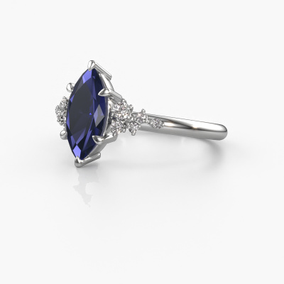 The ring shown above is called the Royce MRQ. We call this type of ring a pavé solitaire ring because it has one center gemstone and a band that is also pave set with gemstones. This engagement ring is made in platinum set with a 11x5.5 mm