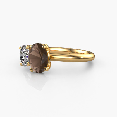 This 14 Carat gold ring is called Toi et Moi OVL-OVL and is set with smokey quartz. How would you describe the style of the love of your life? Does she have a unique sense of style? This stunning sublime gold engagement ring can be custom made to your own or her liking. Our smokey quartz gemstones have been carefully selected because we believe your modern engagement ring must be adorned with nothing but the most beautiful gemstone. Don't you agree? This jewel is made by a team of passionate goldsmiths and jewel designers. This will make your crown jewel truly eye-catching.After receiving your order, our goldsmiths will start the creative process of making your Toi et Moi OVL-OVL engagement ring. We don't keep stock. This is advantageous because these costs will not be passed on to you. Therefore, we can offer jewelry at exceptionally low prices.Different styles of new rings are made daily by our team. Perhaps you have found a 2 stone engagement ring somewhere. One you would like to give to your loved one. Please feel free to share your thoughts and design with our jewel designers. We would love to turn your design into a modern engagement ring. You can follow the development of your ring design because we use very detailed 3D drawings. On top of that, you can order a dummy of the design. A dummy is a plastic ring, which can be shaped according your ring design. You can try it on and check if the engagement ring is up to standard. We will gladly send you a non-binding offer, based on a fair price/ quality ratio. The offer will baffle you, considering the quality of the ring and gemstones.To make it easier for you, we offer a 30 day return policy. Check our terms and conditions.