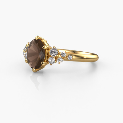 The ring shown above is called the Royce OVL. We call this type of ring a pavé solitaire ring because it has one center gemstone and a band that is also pave set with gemstones. This engagement ring is made in 14 Carat gold set with a 8x6 mm oval smokey quartz, and pave set lab grown diamonds at the sides. Each piece of jewelry is made with passion and love by one of our master goldsmiths.This fantasy gold pavé solitaire engagement ring has an exquisite oval smokey quartz center stone. To further accentuate the center stone, the band is set full with more lab grown diamonds. Its open prong setting allows light to strike the smokey quartz from various angles and this adds sparkle to your smokey quartz ring. The photo shown above depicts the goldsmith's carefully handcrafted details of the ring. The high positioning of the center stone is truly eye-catching. The perfect engagement ring for the crown jewel of your life!After receiving your order, our goldsmiths will passionately start the creative process of making your engagement ring in our own studio. Because we don't have a big stockpile, these costs will not be passed on to you. Our pricing is proof of that! We offer top quality jewels at lowest price, guaranteed.Have you found a specific engagement ring somewhere which you would like to give to your loved one? Please feel free to express your wishes to our jewel designers because we would be honored to turn your design into a fantasy engagement ring. You can follow the development of your ring design because we use 3D drawings. This gives you a realistic preview of how your design will look. You can also preorder a dummy. A dummy is a plastic ring, which can be shaped according your ring design. You can try it on and check if its width and size are suitable for you. We will gladly send you a non-binding offer, based on a fair price/ quality ratio. It will amaze you, considering the quality of the ring and gemstones.To make it easier for you, we offer a 30 day return policy. Check our terms and conditions.