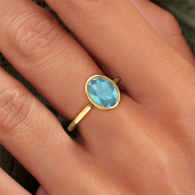 This 14 Carat gold ring is called Lavon OVL and is set with 9x7 mm blue topaz. This exclusive gold solitaire engagement ring is a true work of art! The ornaments are crafted with a lot of patience and great passion. In order to create this ring with great precision, this craft requires a keen eye and skillful hand. A challenge which ignites a fire in our expert goldsmith. The exquisite blue topaz are set in a special way so they stand out even more. This gives the ring an even more glamorous appearance. The edgy engagement ring is actually unique on its own because of the gemstones which we carefully select especially for this ring. On top of that you select the precious metals which will be used to create a unique ring for the most extraordinary woman in your life! This jewel is created to add sparkle to your finger, each jewel is lovingly made by hand by our goldsmiths.By using our modern techniques, we can design and customize the finest quality jewels with the utmost care for you. Our engagement rings are always priced 30 percent lower than other jewelers. We make engagement rings to order so we don't have to maintain a large stock. If you have a certain budget, we are more than happy to advice you accordingly.Our team adds new designs to our online collection daily. Our designers and goldsmiths work together in creating the best design. We strive to offer a diverse collection of jewels. Perhaps you have a specific jewel design in mind. One you came across somewhere. Please contact us for a free consultation. We will make you an offer, based on a fair price/ quality ratio, that will baffle you.To make it easier for you, we offer a 30 day return policy. Check our terms and conditions.