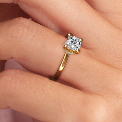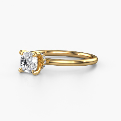 The ring shown above is called the Crystal CUS 3, we call this a solitaire ring because it contains a single gemstone. The engagement ring is made in 14 Carat gold and has a cushion diamond of 1.00 crt. This fashionable gold solitaire ring with exquisite cushion diamond is a beautiful engagement ring. The open prong setting allows light to strike the gemstone from various angles. The ring also stands out because of the high positioning of the gemstone. Because diamonds symbolize true love and purity, they make the perfect gift for the love of your life. The symbol of eternal love is the centerpiece of this solitaire ring. Like a diamond, all other types of precious metal have their own attributed symbolic meaning. You can compile the solitaire engagement ring yourself in various precious metal combinations. This one has the combination of 14 Carat gold with gold. Each piece of jewelry is made by a team of passionate goldsmiths and jewel designers. This will make your crown jewel truly eye-catching.By using a combination of the latest modern techniques, combined with ancient crafting, we can make all our engagement rings in our own studio. Each jewel is made to order. This is advantageous because we can offer you a price you won't find anywhere else.Our designers and goldsmiths work together each day, creating new jewels. Perhaps you have found a nice fashionable engagement ring somewhere, which can be used to customize your unique ring. Please feel free to contact us. We will make you an offer, based on a fair price/ quality ratio, which will amaze you.To make it easier for you, we offer a 30 day return policy. Check our terms and conditions.
