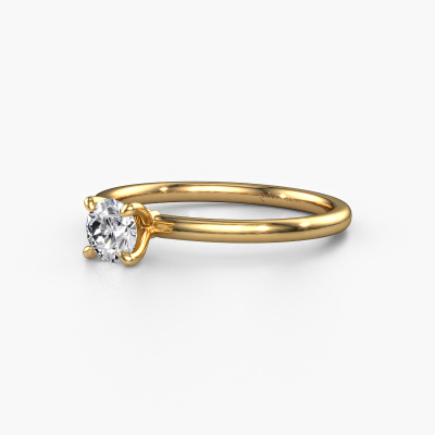 The ring shown above is called the Crystal RND 1, we call this a solitaire ring because it contains a single gemstone. The engagement ring is made in 14 Carat gold and has a round diamond of 0.40 crt. This classic gold solitaire ring with exquisite round diamond is a beautiful engagement ring. The open prong setting allows light to strike the gemstone from various angles. The ring also stands out because of the high positioning of the gemstone. Because diamonds symbolize true love and purity, they make the perfect gift for the love of your life. The symbol of eternal love is the centerpiece of this solitaire ring. Like a diamond, all other types of precious metal have their own attributed symbolic meaning. You can compile the solitaire engagement ring yourself in various precious metal combinations. This one has the combination of 14 Carat gold with gold. Each piece of jewelry is made by a team of passionate goldsmiths and jewel designers. This will make your crown jewel truly eye-catching.After receiving your order, our goldsmiths will passionately start the creative process of making your engagement ring in our own studio. Because we don't have a big stockpile, these costs will not be passed on to you. Our pricing is proof of that! We offer top quality jewels at lowest price, guaranteed.Do you have a specific ring in mind? One you came across somewhere. Please feel free to tell us your wishes and we will turn your design into a unique engagement ring. You can follow the development of your ring design because we use 3D drawings. This gives you a realistic preview of your design. We will gladly send you a non-binding offer, based on a fair price/ quality ratio. It will amaze you.To make it easier for you, we offer a 30 day return policy. Check our terms and conditions.