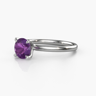 The ring shown above is called the Crystal RND 1, we call this a solitaire ring because it contains a single gemstone. The engagement ring is made in platinum and has a round amethyst of 6.8 mm. This classic platinum solitaire ring with exquisite round amethyst is a beautiful engagement ring. The open prong setting allows light to strike the gemstone from various angles. The ring also stands out because of the high positioning of the gemstone. Because diamonds symbolize true love and purity, they make the perfect gift for the love of your life. The symbol of eternal love is the centerpiece of this solitaire ring. Like a diamond, all other types of precious metal have their own attributed symbolic meaning. You can compile the solitaire engagement ring yourself in various precious metal combinations. This one has the combination of platinum with platinum. Each piece of jewelry is made by a team of passionate goldsmiths and jewel designers. This will make your crown jewel truly eye-catching.After receiving your order, our goldsmiths will passionately start the creative process of making your engagement ring in our own studio. Because we don't have a big stockpile, these costs will not be passed on to you. Our pricing is proof of that! We offer top quality jewels at lowest price, guaranteed.Do you have a specific ring in mind? One you came across somewhere. Please feel free to tell us your wishes and we will turn your design into a unique engagement ring. You can follow the development of your ring design because we use 3D drawings. This gives you a realistic preview of your design. We will gladly send you a non-binding offer, based on a fair price/ quality ratio. It will amaze you.To make it easier for you, we offer a 30 day return policy. Check our terms and conditions.