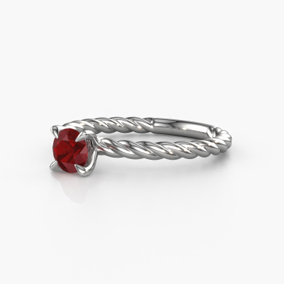 The ring shown above is called the Twanna, we call this a solitaire ring because it contains a single gemstone. The engagement ring is made in platinum and has a round ruby of 5 mm. This fantasy platinum solitaire ring with exquisite round ruby is a beautiful engagement ring. The open prong setting allows light to strike the gemstone from various angles. The ring also stands out because of the high positioning of the gemstone. Because diamonds symbolize true love and purity, they make the perfect gift for the love of your life. The symbol of eternal love is the centerpiece of this solitaire ring. Like a diamond, all other types of precious metal have their own attributed symbolic meaning. You can compile the solitaire engagement ring yourself in various precious metal combinations. This one has the combination of platinum with platinum. Each piece of jewelry is made by a team of passionate goldsmiths and jewel designers. This will make your crown jewel truly eye-catching.After receiving your order, our goldsmiths will passionately start the creative process of making your engagement ring in our own studio. Because we don't have a big stockpile, these costs will not be passed on to you. Our pricing is proof of that! We offer top quality jewels at lowest price, guaranteed.Do you have a specific ring in mind? One you came across somewhere. Please feel free to tell us your wishes and we will turn your design into a unique engagement ring. You can follow the development of your ring design because we use 3D drawings. This gives you a realistic preview of your design. We will gladly send you a non-binding offer, based on a fair price/ quality ratio. It will amaze you.To make it easier for you, we offer a 30 day return policy. Check our terms and conditions.