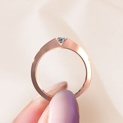 This 14 Carat rose gold ring is called Lizzy 1 and is set with zirconia. Do you keep up with the latest fashion trends? Do you want a unique engagement ring that matches your lifestyle? This edgy engagement ring is an extraordinary ring which can be custom made to fit your or her personal style. This modern rose gold engagement ring is set with zirconia. Our cz-stones are carefully selected for this specific ring in order to create the best effect. Our expert goldsmith will create your ring in our own artisan studio where the zirconia will be set with great care. The ring will then be polished to perfection. Nothing but the best for the love of your life! This jewel is created to add sparkle to your finger, each jewel is lovingly made by hand by our goldsmiths.By using our modern techniques, we can design and customize the finest quality jewels with the utmost care for you. Our engagement rings are always priced 30 percent lower than other jewelers. We make engagement rings to order so we don't have to maintain a large stock. If you have a certain budget, we are more than happy to advice you accordingly.Do you have a specific ring in mind? One you came across somewhere. Please feel free to tell us your wishes and we will turn your design into a unique engagement ring. You can follow the development of your ring design because we use 3D drawings. This gives you a realistic preview of your design. We will gladly send you a non-binding offer, based on a fair price/ quality ratio. It will amaze you.To make it easier for you, we offer a 30 day return policy. Check our terms and conditions.