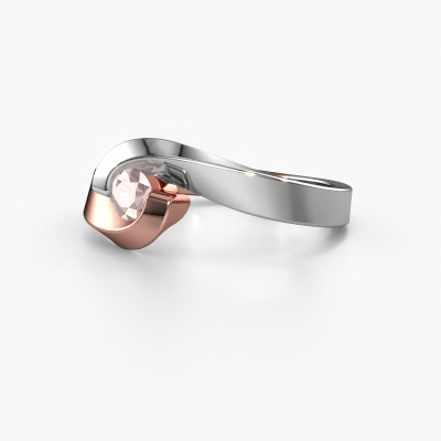 The ring shown above is called the Sheryl, we call this a solitaire ring because it contains a single gemstone. The engagement ring is made in 14 Carat rose gold and has a round morganite champagne of 3.7 mm. This contemporary rose gold solitaire ring with exquisite round morganite champagne is a beautiful engagement ring. The open prong setting allows light to strike the gemstone from various angles. The ring also stands out because of the high positioning of the gemstone. Because diamonds symbolize true love and purity, they make the perfect gift for the love of your life. The symbol of eternal love is the centerpiece of this solitaire ring. Like a diamond, all other types of precious metal have their own attributed symbolic meaning. You can compile the solitaire engagement ring yourself in various precious metal combinations. This one has the combination of 14 Carat rose gold with white gold. Each piece of jewelry is unique in every way! Simply customize to your liking