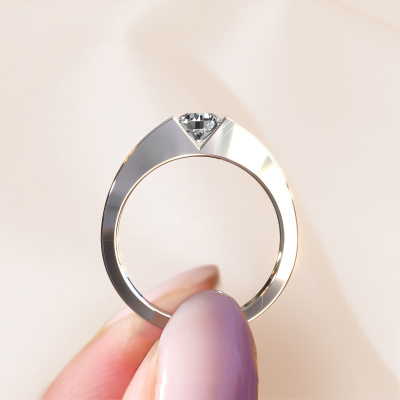 This 14 Carat white gold ring is called Lizzy 1 and is set with diamond. Do you keep up with the latest fashion trends? Do you want a unique engagement ring that matches your lifestyle? This edgy engagement ring is an extraordinary ring which can be custom made to fit your or her personal style. This modern white gold engagement ring is set with diamond. Our diamonds are carefully selected for this specific ring in order to create the best effect. Our expert goldsmith will create your ring in our own artisan studio where the diamond will be set with great care. The ring will then be polished to perfection. Nothing but the best for the love of your life! This jewel is created to add sparkle to your finger, each jewel is lovingly made by hand by our goldsmiths.By using our modern techniques, we can design and customize the finest quality jewels with the utmost care for you. Our engagement rings are always priced 30 percent lower than other jewelers. We make engagement rings to order so we don't have to maintain a large stock. If you have a certain budget, we are more than happy to advice you accordingly.Do you have a specific ring in mind? One you came across somewhere. Please feel free to tell us your wishes and we will turn your design into a unique engagement ring. You can follow the development of your ring design because we use 3D drawings. This gives you a realistic preview of your design. We will gladly send you a non-binding offer, based on a fair price/ quality ratio. It will amaze you.To make it easier for you, we offer a 30 day return policy. Check our terms and conditions.