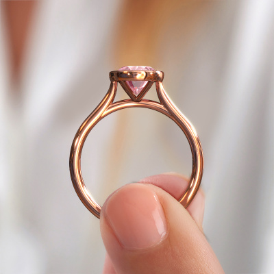 This 14 Carat rose gold ring is called Lavon OVL and is set with 9x7 mm pink lab grown diamond. This exclusive rose gold solitaire engagement ring is a true work of art! The ornaments are crafted with a lot of patience and great passion. In order to create this ring with great precision, this craft requires a keen eye and skillful hand. A challenge which ignites a fire in our expert goldsmith. The exquisite pink lab grown diamonds are set in a special way so they stand out even more. This gives the ring an even more glamorous appearance. The edgy engagement ring is actually unique on its own because of the gemstones which we carefully select especially for this ring. On top of that you select the precious metals which will be used to create a unique ring for the most extraordinary woman in your life! This jewel is created to add sparkle to your finger, each jewel is lovingly made by hand by our goldsmiths.By using our modern techniques, we can design and customize the finest quality jewels with the utmost care for you. Our engagement rings are always priced 30 percent lower than other jewelers. We make engagement rings to order so we don't have to maintain a large stock. If you have a certain budget, we are more than happy to advice you accordingly.Our team adds new designs to our online collection daily. Our designers and goldsmiths work together in creating the best design. We strive to offer a diverse collection of jewels. Perhaps you have a specific jewel design in mind. One you came across somewhere. Please contact us for a free consultation. We will make you an offer, based on a fair price/ quality ratio, that will baffle you.To make it easier for you, we offer a 30 day return policy. Check our terms and conditions.