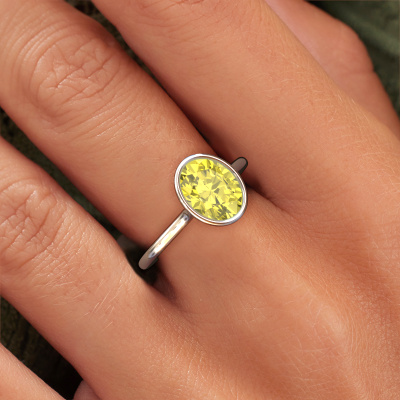 This 14 Carat white gold ring is called Lavon OVL and is set with 9x7 mm yellow lab grown diamond. This exclusive white gold solitaire engagement ring is a true work of art! The ornaments are crafted with a lot of patience and great passion. In order to create this ring with great precision, this craft requires a keen eye and skillful hand. A challenge which ignites a fire in our expert goldsmith. The exquisite yellow lab grown diamonds are set in a special way so they stand out even more. This gives the ring an even more glamorous appearance. The edgy engagement ring is actually unique on its own because of the gemstones which we carefully select especially for this ring. On top of that you select the precious metals which will be used to create a unique ring for the most extraordinary woman in your life! This jewel is created to add sparkle to your finger, each jewel is lovingly made by hand by our goldsmiths.By using our modern techniques, we can design and customize the finest quality jewels with the utmost care for you. Our engagement rings are always priced 30 percent lower than other jewelers. We make engagement rings to order so we don't have to maintain a large stock. If you have a certain budget, we are more than happy to advice you accordingly.Our team adds new designs to our online collection daily. Our designers and goldsmiths work together in creating the best design. We strive to offer a diverse collection of jewels. Perhaps you have a specific jewel design in mind. One you came across somewhere. Please contact us for a free consultation. We will make you an offer, based on a fair price/ quality ratio, that will baffle you.To make it easier for you, we offer a 30 day return policy. Check our terms and conditions.