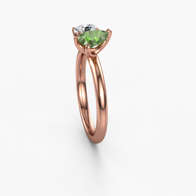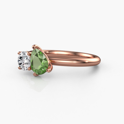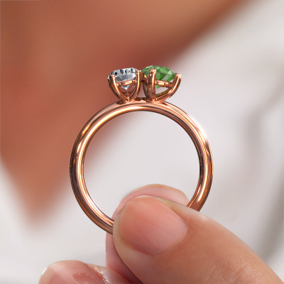 This 14 Carat rose gold ring is called Toi et Moi PER-RND and is set with tourmaline green. How would you describe the style of the love of your life? Does she have a unique sense of style? This stunning sublime rose gold engagement ring can be custom made to your own or her liking. Our tourmaline green gemstones have been carefully selected because we believe your fantasy engagement ring must be adorned with nothing but the most beautiful gemstone. Don't you agree? This jewel is unique in every way! Simply customize to your liking,By using our modern techniques, we can design and customize the finest quality jewels with the utmost care for you. Our engagement rings are always priced 30 percent lower than other jewelers. We make engagement rings to order so we don't have to maintain a large stock. If you have a certain budget, we are more than happy to advice you accordingly.Our designers and goldsmiths work together each day, creating new jewels. Perhaps you have found a nice fantasy engagement ring somewhere, which can be used to customize your unique ring. Please feel free to contact us. We will make you an offer, based on a fair price/ quality ratio, which will amaze you.To make it easier for you, we offer a 30 day return policy. Check our terms and conditions.