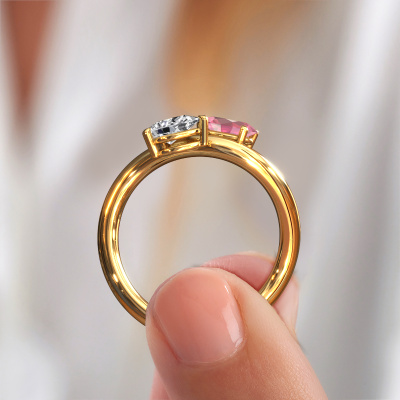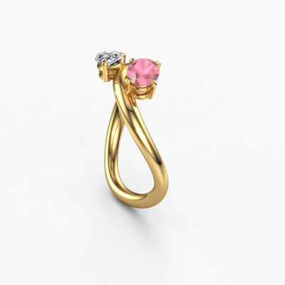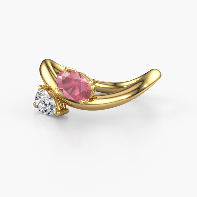 This 14 Carat gold ring is called Chloe OVL-PER and is set with tourmaline pink. How would you describe the style of the love of your life? Does she have a unique sense of style? This stunning twist gold engagement ring can be custom made to your own or her liking. Our tourmaline pink gemstones have been carefully selected because we believe your unique engagement ring must be adorned with nothing but the most beautiful gemstone. Don't you agree? This jewel is created to add sparkle to your finger, each jewel is lovingly made by hand by our goldsmiths.Because we design and deliver our own rings, we can offer you a engagement ring at a price you won't find anywhere else. A ring is made to order, which helps prevent excess supplies, so we can make you a great price offer. We understand it feels risky, buying your engagement ring online, but we will gladly assist in the designing process, taking your budget into consideration.Do you have a specific ring in mind? One you came across somewhere. Please feel free to tell us your wishes and we will turn your design into a unique engagement ring. You can follow the development of your ring design because we use 3D drawings. This gives you a realistic preview of your design. We will gladly send you a non-binding offer, based on a fair price/ quality ratio. It will amaze you.To make it easier for you, we offer a 30 day return policy. Check our terms and conditions.
