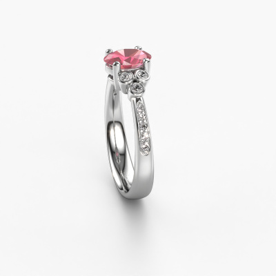 This platinum ring is called Lucy 2 and is set with tourmaline pink. How would you describe the style of the love of your life? Does she have a unique sense of style? This stunning graceful platinum engagement ring can be custom made to your own or her liking. Our tourmaline pink gemstones have been carefully selected because we believe your classic engagement ring must be adorned with nothing but the most beautiful gemstone. Don't you agree? This jewel is made to shine bright around your finger. Each jewel is hand made with love by our goldsmiths.By using our modern techniques, we can design and customize the finest quality jewels with the utmost care for you. Our engagement rings are always priced 30 percent lower than other jewelers. We make engagement rings to order so we don't have to maintain a large stock. If you have a certain budget, we are more than happy to advice you accordingly.Do you have a specific ring in mind? One you came across somewhere. Please feel free to tell us your wishes and we will turn your design into a unique engagement ring. You can follow the development of your ring design because we use 3D drawings. This gives you a realistic preview of your design. We will gladly send you a non-binding offer, based on a fair price/ quality ratio. It will amaze you.To make it easier for you, we offer a 30 day return policy. Check our terms and conditions.