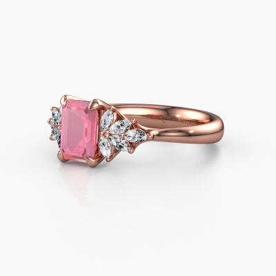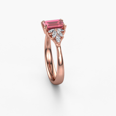 This 14 Carat rose gold ring is called Fiona EME and is set with 7x5 mm tourmaline pink. What is it that makes your relationship unique? What is it about her that makes you want to bend down on one knee? The unique bond between the two of you is emphasized by an equally unique ring. A one of a kind special pavé solitaire engagement ring made especially for her. That is why this vintage ring fits her like a glove. Each specific detail of this special rose gold tourmaline pink set engagement ring is hand-picked, crafted and polished by our expert goldsmith. The result is an exquisite ring, unique and perfectly crafted to perfection. That is what our expert Goldsmiths strive for. This jewel is created to add sparkle to your finger, each jewel is lovingly made by hand by our goldsmiths.Because we design and deliver our own rings, we can offer you a engagement ring at a price you won't find anywhere else. A ring is made to order, which helps prevent excess supplies, so we can make you a great price offer. We understand it feels risky, buying your engagement ring online, but we will gladly assist in the designing process, taking your budget into consideration.Our team adds new designs to our online collection daily. Our designers and goldsmiths work together in creating the best design. We strive to offer a diverse collection of jewels. Perhaps you have a specific jewel design in mind. One you came across somewhere. Please contact us for a free consultation. We will make you an offer, based on a fair price/ quality ratio, that will baffle you.To make it easier for you, we offer a 30 day return policy. Check our terms and conditions.