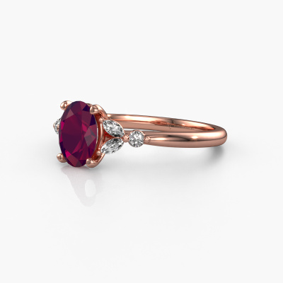 This 14 Carat rose gold ring is called Megan OVL and is set with 7,5x5,5 mm rhodolite. Are you looking for a unique rose gold engagement ring which you can customize to your own liking? This unique engagement ring is set with rhodolite which is carefully selected for this specific ring in order to create the best effect. Our expert goldsmith will create your ring in our own crafting studio, where the rhodolite will be set with great care. The ring will then be polished till it shines perfectly. Nothing but the best for the love of your life! The great thing about our online tool is, that you can compile your own jewelry into a unique, personalized piece. Each piece of jewelry is made by a team of passionate goldsmiths and jewel designers. This will make your crown jewel truly eye-catching.By using a combination of the latest modern techniques, combined with ancient crafting, we can make all our engagement rings in our own studio. Each jewel is made to order. This is advantageous because we can offer you a price you won't find anywhere else.Different styles of new rings are made daily by our team. Perhaps you have found a pavé solitaire engagement ring somewhere. One you would like to give to your loved one. Please feel free to share your thoughts and design with our jewel designers. We would love to turn your design into a unique engagement ring. You can follow the development of your ring design because we use very detailed 3D drawings. On top of that, you can order a dummy of the design. A dummy is a plastic ring, which can be shaped according your ring design. You can try it on and check if the engagement ring is up to standard. We will gladly send you a non-binding offer, based on a fair price/ quality ratio. The offer will baffle you, considering the quality of the ring and gemstones.To make it easier for you, we offer a 30 day return policy. Check our terms and conditions.