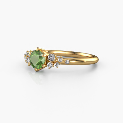 The ring shown above is called the Royce RND. We call this a solitaire ring because it contains a single gemstone. The engagement ring is made in 14 Carat gold and has a round tourmaline green of 5 mm. This extraordinary vintage gold solitaire engagement ring is set with a beautiful round tourmaline green to add sparkle to your proposal. The open prong setting allows light to strike the gemstone from various angles. Did you know a diamond represents everlasting love and fidelity? This makes it a perfect centerpiece. Our goldsmith carefully positions the gemstone of your choosing high on top of the ring, which makes it stand out. Each piece of jewelry is made by a team of passionate goldsmiths and jewel designers. This will make your crown jewel truly eye-catching.After receiving your order, our goldsmiths will passionately start the creative process of making your engagement ring in our own studio. Because we don't have a big stockpile, these costs will not be passed on to you. Our pricing is proof of that! We offer top quality jewels at lowest price, guaranteed.Do you have a specific ring in mind? One you came across somewhere. Please feel free to tell us your wishes and we will turn your design into a unique engagement ring. You can follow the development of your ring design because we use 3D drawings. This gives you a realistic preview of your design. We will gladly send you a non-binding offer, based on a fair price/ quality ratio. It will amaze you.To make it easier for you, we offer a 30 day return policy. Check our terms and conditions.