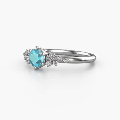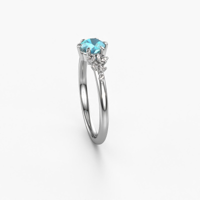 The ring shown above is called the Royce RND. We call this a solitaire ring because it contains a single gemstone. The engagement ring is made in platinum and has a round blue topaz of 5 mm. This extraordinary vintage platinum solitaire engagement ring is set with a beautiful round blue topaz to add sparkle to your proposal. The open prong setting allows light to strike the gemstone from various angles. Did you know a diamond represents everlasting love and fidelity? This makes it a perfect centerpiece. Our goldsmith carefully positions the gemstone of your choosing high on top of the ring, which makes it stand out. Each piece of jewelry is made by a team of passionate goldsmiths and jewel designers. This will make your crown jewel truly eye-catching.After receiving your order, our goldsmiths will passionately start the creative process of making your engagement ring in our own studio. Because we don't have a big stockpile, these costs will not be passed on to you. Our pricing is proof of that! We offer top quality jewels at lowest price, guaranteed.Do you have a specific ring in mind? One you came across somewhere. Please feel free to tell us your wishes and we will turn your design into a unique engagement ring. You can follow the development of your ring design because we use 3D drawings. This gives you a realistic preview of your design. We will gladly send you a non-binding offer, based on a fair price/ quality ratio. It will amaze you.To make it easier for you, we offer a 30 day return policy. Check our terms and conditions.