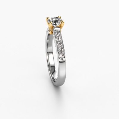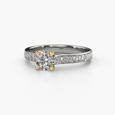 The ring shown above is called the Valorie RND 2. We call this type of ring a pavé solitaire ring because it has one center gemstone and a band that is also pave set with gemstones. The 14 Carat white gold engagement ring is set with a round 0.50 crt diamond center stone and the band is pave set with lab-grown diamond gemstones. Each jewel is made just for you, with attention to detail and design.This modern white gold pavé solitaire engagement ring has an exquisite round diamond center stone. To further accentuate the center stone, the band is fully set with more lab grown diamonds. Its open prong setting allows light to strike the diamond from various angles and this adds sparkle to your diamond ring. The photo shown above depicts the goldsmith's carefully handcrafted details of the ring. The high positioning of the center stone is truly eye-catching. The perfect engagement ring for the crown jewel of your life! By using our modern techniques, we can design and customize the finest quality jewels with the utmost care for you. Our engagement rings are always priced 30 percent lower than other jewelers. We make engagement rings to order so we don't have to maintain a large stock. If you have a certain budget, we are more than happy to advice you accordingly.Our designers and goldsmiths work together each day, creating new jewels. Perhaps you have found a nice modern engagement ring somewhere, which can be used to customize your unique ring. Please feel free to contact us. We will make you an offer, based on a fair price/ quality ratio, which will amaze you.To make it easier for you, we offer a 30 day return policy. Check our terms and conditions.