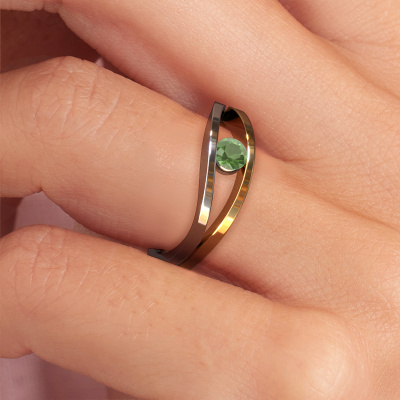 This 14 Carat white gold ring is called Sigrid 1 and is set with 3.7 mm tourmaline green. This design white gold engagement ring is a true masterpiece! Our expert goldsmith uses special techniques during crafting of this tension set ring to make sure the tourmaline green of this white gold ring is fixed properly. The effect is that light fall reflects beautifully on the gemstone, which gives the ring its maximum shine and glamorous appearance. The result is a unique ring, with a trendy appearance, passionately handcrafted to perfection by our artisan goldsmith. A one-of-a-kind ring, designed for the love of your life! This jewel is made to shine bright around your finger. Each jewel is hand made with love by our goldsmiths.By using our modern techniques, we can design and customize the finest quality jewels with the utmost care for you. Our engagement rings are always priced 30 percent lower than other jewelers. We make engagement rings to order so we don't have to maintain a large stock. If you have a certain budget, we are more than happy to advice you accordingly.Different styles of new rings are made daily by our team. Perhaps you have found a solitaire engagement ring somewhere. One you would like to give to your loved one. Please feel free to share your thoughts and design with our jewel designers. We would love to turn your design into a design engagement ring. You can follow the development of your ring design because we use very detailed 3D drawings. On top of that, you can order a dummy of the design. A dummy is a plastic ring, which can be shaped according your ring design. You can try it on and check if the engagement ring is up to standard. We will gladly send you a non-binding offer, based on a fair price/ quality ratio. The offer will baffle you, considering the quality of the ring and gemstones.To make it easier for you, we offer a 30 day return policy. Check our terms and conditions.