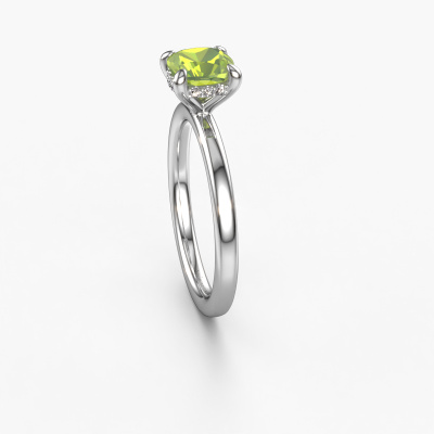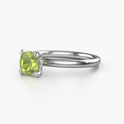 This 14 Carat white gold ring is called Simone CUS 2 and is set with peridot. Are you in the market for a unique white gold engagement ring with a trendy appearance? Then this ring is perfect for you. Simply customize to your or her liking. This unique graceful engagement ring is set with exquisite peridot. It has been carefully selected because your engagement ring must be adorned with nothing but the most beautiful gemstone. Our expert goldsmith will create your ring in our own studio where the peridot will be set with great care. The ring will then be polished to perfection to give it that extra sparkle. The perfect ring for your significant other! By using a combination of the latest modern techniques, combined with ancient crafting, we can make all our engagement rings in our own studio. Each jewel is made to order. This is advantageous because we can offer you a price you won't find anywhere else.Our team adds new designs to our online collection daily. Our designers and goldsmiths work together in creating the best design. We strive to offer a diverse collection of jewels. Perhaps you have a specific jewel design in mind. One you came across somewhere. Please contact us for a free consultation. We will make you an offer, based on a fair price/ quality ratio, that will baffle you.To make it easier for you, we offer a 30 day return policy. Check our terms and conditions.