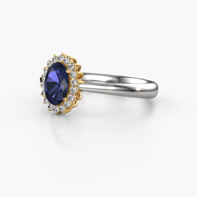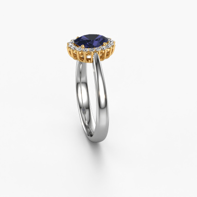 The ring shown above is called the Tilly ovl 1. We call this type of ring a cluster ring, the center gemstone is surrounded by smaller sized stones. This 14 Carat white gold version is set with a 7x5 mm oval sapphire center stone, embraced by smaller lab grown diamonds. The classic white gold cluster engagement ring stands out because of its shape. Together, the smaller and bigger sized sapphire gemstones form a flower and they appear to collide into one big sparkling gem. This classic engagement ring is also known as the flower ring. Our expert Goldsmiths make sure the smaller lab grown diamonds stones are set identically so there is no light interference in the sapphire but unity instead. With perfect precision and a skillful hand each sapphire is set in the ring. During manufacturing, it is constantly monitored to make sure light reflects flawlessly. This results in a unique engagement ring, with a radiant sapphire at its centre. A lovely, meaningful gift to bestow upon the love of your life. By using a combination of the latest modern techniques, combined with ancient crafting, we can make all our engagement rings in our own studio. Each jewel is made to order. This is advantageous because we can offer you a price you won't find anywhere else.Do you have a specific ring in mind? One you came across somewhere. Please feel free to tell us your wishes and we will turn your design into a unique engagement ring. You can follow the development of your ring design because we use 3D drawings. This gives you a realistic preview of your design. We will gladly send you a non-binding offer, based on a fair price/ quality ratio. It will amaze you.To make it easier for you, we offer a 30 day return policy. Check our terms and conditions.