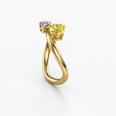 This 14 Carat gold ring is called Chloe OVL-PER and is set with yellow lab grown diamond. How would you describe the style of the love of your life? Does she have a unique sense of style? This stunning twist gold engagement ring can be custom made to your own or her liking. Our yellow lab grown diamonds gemstones have been carefully selected because we believe your unique engagement ring must be adorned with nothing but the most beautiful gemstone. Don't you agree? This jewel is created to add sparkle to your finger, each jewel is lovingly made by hand by our goldsmiths.Because we design and deliver our own rings, we can offer you a engagement ring at a price you won't find anywhere else. A ring is made to order, which helps prevent excess supplies, so we can make you a great price offer. We understand it feels risky, buying your engagement ring online, but we will gladly assist in the designing process, taking your budget into consideration.Do you have a specific ring in mind? One you came across somewhere. Please feel free to tell us your wishes and we will turn your design into a unique engagement ring. You can follow the development of your ring design because we use 3D drawings. This gives you a realistic preview of your design. We will gladly send you a non-binding offer, based on a fair price/ quality ratio. It will amaze you.To make it easier for you, we offer a 30 day return policy. Check our terms and conditions.