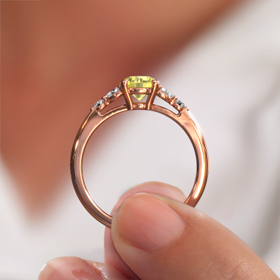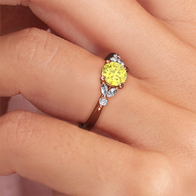 This 14 Carat rose gold ring is called Megan RND and is set with yellow lab grown diamond. How would you describe the style of the love of your life? Does she have a unique sense of style? This stunning sparkling rose gold engagement ring can be custom made to your own or her liking. Our yellow lab grown diamonds gemstones have been carefully selected because we believe your fantasy engagement ring must be adorned with nothing but the most beautiful gemstone. Don't you agree? This jewel is made just for you by our master goldsmiths in our own studio.By using our modern techniques, we can design and customize the finest quality jewels with the utmost care for you. Our engagement rings are always priced 30 percent lower than other jewelers. We make engagement rings to order so we don't have to maintain a large stock. If you have a certain budget, we are more than happy to advice you accordingly.Our team adds new designs to our online collection daily. Our designers and goldsmiths work together in creating the best design. We strive to offer a diverse collection of jewels. Perhaps you have a specific jewel design in mind. One you came across somewhere. Please contact us for a free consultation. We will make you an offer, based on a fair price/ quality ratio, that will baffle you.To make it easier for you, we offer a 30 day return policy. Check our terms and conditions.