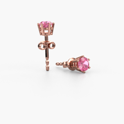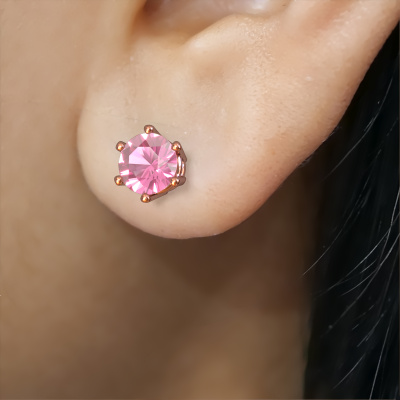 Solitaire earrings are classic yet fashionable pieces of jewelry. In solitaire earrings, the prong setting is open and only 1 stone is set, which helps reflect light on the gemstone from every angle. Because the pink sapphire are positioned higher, these classic earrings become truly eye-catching. We carefully create each detail of these solitaire earrings by hand. Our expert goldsmiths set the pink sapphire in these rose gold earrings with the utmost precision, so light reflects evenly from every angle. The earrings are set with 4.2 mm round pink sapphire. The Fay earrings are made just for you by our master goldsmith in our own artisan studio.. As soon as you finished designing your classic earrings with our online tool, our goldsmiths will start their creative process of making your earrings. This will be done with passion and care, according ancient crafting. On top of that, our jewels are made of eco-friendly materials. If you want specific changes made to your Fay earrings, that are unavailable in our online tool, please feel free to contact our expert designers. After receiving your order, our goldsmiths will start the creative process of making your Fay earrings. We don't keep stock. This is advantageous because these costs will not be passed on to you. Therefore, we can offer jewelry at exceptionally low prices. To make it easier for you, we offer a 30 day return policy. Check our terms and conditions.