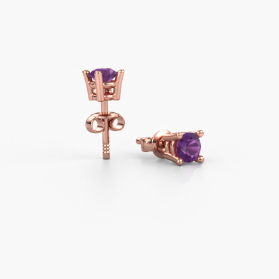 Solitaire stud earrings are classic yet fashionable pieces of jewelry. In solitaire stud earrings, the prong setting is open and only 1 stone is set, which helps reflect light on the gemstone from every angle. Because the amethysten are positioned higher, these classic stud earrings become truly eye-catching. We carefully create each detail of these solitaire stud earrings by hand. Our expert goldsmiths set the amethysten in these rose gold stud earrings with the utmost precision, so light reflects evenly from every angle. The stud earrings are set with 4 mm round amethysten. The Jannette earrings are unique pieces of jewelry because they can be customized to your liking.. What could possibly be more beautiful than personally designed classic stud earrings, handmade by yours truly? Please, feel free to customize each model by choosing different precious metals and gemstones. This makes your stud earrings truly unique. These stud earrings can be customized to your liking. It goes without saying that you can also ask us for help. We are more than willing to assist in designing your classic stud earrings. If you like but still have specific wishes concerning customizing your design, such as adding a gemstone which isn't mentioned in the list, feel free to contact us. We will gladly inform you on different options. By using a combination of the latest modern techniques, combined with ancient crafting, we can make all our stud earrings in our own studio. Each jewel is made to order. This is advantageous because we can offer you a price you won't find anywhere else. To make it easier for you, we offer a 30 day return policy. Check our terms and conditions.
