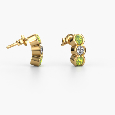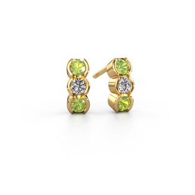 How would you describe your style? Are you looking for something slightly different? These trendy elegant gold earrings are unique and created by our expert goldsmiths. These trendy earrings are set with peridot. Each of the peridot is carefully selected, because we believe your earrings should be adorned with nothing but the most exquisite gemstones. Wouldn't you agree? The Lotte made just for you, with great attention to detail and design.. Our goldsmiths passionately create your customized earrings to your liking with the utmost care. The gold set earrings, as shown here, can be customized using our online tool. Feel free to ask our jewel designers for assistance if you want changes made which are unavailable in our online tool. We are happy to answer your questions.By using a combination of the latest modern techniques, combined with ancient crafting, we can make all our earrings in our own studio. Each jewel is made to order. This is advantageous because we can offer you a price you won't find anywhere else. To make it easier for you, we offer a 30 day return policy. Check our terms and conditions.