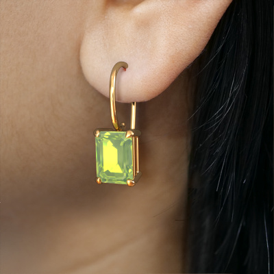 If you are looking for modern and personal drop earrings, then these will fit you perfectly. You have the option to add your birthstones to these drop earrings. Each month has its own birthstone. You may use your own birthstone gemstone or that of your children. A priceless gift, even if it is for yourself. Our expert jeweler will set the selected stones in your drop earrings with utter precision, so light reflects evenly from every angle. Here, 8x6 mm emerald cut peridot gemstones were used to adorn these gold charming Cleo EME drop earrings. The Cleo EME earrings are passionately made by one of our master goldsmiths.. Customized modern charming drop earrings are the perfect gift! New exquisite designs are added daily by our team of passionate goldsmiths. And each design can be customized. Simply customize the precious metals and the color of gemstones which will be used, for example. This makes your design of the modern Cleo EME drop earrings truly unique! By using a combination of the latest modern techniques, combined with ancient crafting, we can make all our drop earrings in our own studio. Each jewel is made to order. This is advantageous because we can offer you a price you won't find anywhere else.To make it easier for you, we offer a 30 day return policy. Check our terms and conditions.
