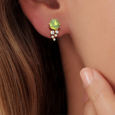If you are looking for trendy and personal earrings, then these will fit you perfectly. You have the option to add your birthstones to these earrings. Each month has its own birthstone. You may use your own birthstone gemstone or that of your children. A priceless gift, even if it is for yourself. Our expert jeweler will set the selected stones in your earrings with utter precision, so light reflects evenly from every angle. Here, 6 mm round peridot gemstones were used to adorn these gold graceful Royce earrings. The Royce earrings are passionately made by one of our master goldsmiths.. The best part of these graceful earrings is that you can customize it to your own liking. Your style, your choice, your earrings. On top of that, your trendy gold earrings will be made by hand with eco-friendly materials! Please feel free to easily customize the earrings, using our online tool. After receiving your order, our goldsmiths will passionately start the creative process of making your earrings in our own studio. Because we don't have a big stockpile, these costs will not be passed on to you. Our pricing is proof of that! We offer top quality jewels at lowest price, guaranteed.To make it easier for you, we offer a 30 day return policy. Check our terms and conditions.