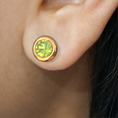 The round gold Lieke RND stud earrings are set with stunning round peridot. These stud earrings are ideally combined with colored gemstones, but if you prefer other gemstones, feel free to choose from our collection. Our expert jewelers would love to create handmade stud earrings for you in our own crafting studio. We use a unique concept, a perfect combination of ancient craftsmanship and the latest modern techniques. This enables us to design your stud earrings to perfection. The stud earrings, as shown here, are set with peridot 4 mm. How do you like these modern gold stud earrings? Simply customize this Lieke RND stud earrings, using our online tool. Subsequently, your personal round Lieke RND stud earrings will be made by hand by our goldsmiths. Precious metals and gemstones can be customized to your liking. Do you have specific preferences which are unavailable in our online tool? Please feel free to contact us. We will customize your personal modern stud earrings to your liking.De Lieke RND earrings are made just for you by our master goldsmith in our own artisan studio.Because we design and deliver our own stud earrings, we can offer you stud earrings at a price you won't find anywhere else. stud earrings are made to order, which helps prevent excess supplies, so we can make you a great price offer. We understand it feels risky, buying your stud earrings online, but we will gladly assist in the designing process, taking your budget into consideration.To make it easier for you, we offer a 30 day return policy. Check our terms and conditions.