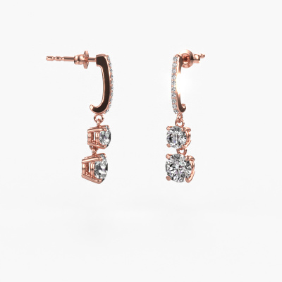 What could possibly be more stunning than a pair of stunning drop earrings? These rose gold Tanja 2 drop earrings are a true eye-catcher. These hanging drop earrings are set with round diamond. We collaborate with the best suppliers of gemstones and they select our gemstones with great care. Your drop earrings are made by hand in our own artisan studio by our expert goldsmiths. The best part of these hanging drop earrings is that you can customize it to your own liking. Your style, your choice, your drop earrings. On top of that, your exclusive rose gold drop earrings will be made by hand with eco-friendly materials! Please feel free to easily customize the drop earrings, using our online tool.Because we design and deliver our own drop earrings, we can offer you drop earrings at a price you won't find anywhere else. drop earrings are made to order, which helps prevent excess supplies, so we can make you a great price offer. We understand it feels risky, buying your drop earrings online, but we will gladly assist in the designing process, taking your budget into consideration.To make it easier for you, we offer a 30 day return policy. Check our terms and conditions.