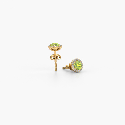 The Seline rnd earrings are set with stunning round peridot. We prefer them set with diamonds. But the best part, is that you get to choose. The Seline rnd, as shown here, are made of gold. You are free to choose your gemstones and to customize the earrings to your liking. We carefully select each gemstone. We create your earrings by hand in our own artisan studio and make use of the latest techniques, combined with ancient craftsmanship. Easily customized to your liking with our online tool. Take these earrings set with 4 mm peridot, for example. The Seline rnd earrings are passionately made by one of our master goldsmiths.Are you on a budget? Please feel free to contact us, so we can go discuss your options. We offer our earrings at guaranteed best price, because we make them to order. You won't find such a price anywhere else!To make it easier for you, we offer a 30 day return policy. Check our terms and conditions.