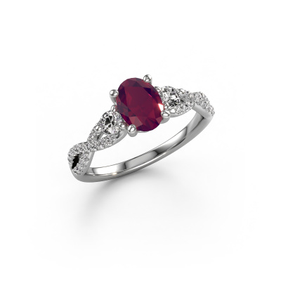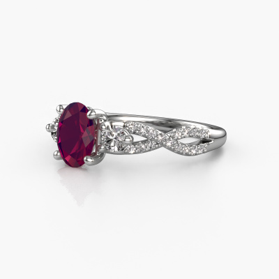 This platinum ring is called Marilou OVL and is set with rhodolite. Do you keep up with the latest fashion trends? Do you want a unique engagement ring that matches your lifestyle? This tasteful engagement ring is an extraordinary ring which can be custom made to fit your or her personal style. This contemporary platinum engagement ring is set with rhodolite. Our rhodolite are carefully selected for this specific ring in order to create the best effect. Our expert goldsmith will create your ring in our own artisan studio where the rhodolite will be set with great care. The ring will then be polished to perfection. Nothing but the best for the love of your life! This jewel is made just for you by our master goldsmiths in our own studio.By using our modern techniques, we can design and customize the finest quality jewels with the utmost care for you. Our engagement rings are always priced 30 percent lower than other jewelers. We make engagement rings to order so we don't have to maintain a large stock. If you have a certain budget, we are more than happy to advice you accordingly.Do you have a specific ring in mind? One you came across somewhere. Please feel free to tell us your wishes and we will turn your design into a unique engagement ring. You can follow the development of your ring design because we use 3D drawings. This gives you a realistic preview of your design. We will gladly send you a non-binding offer, based on a fair price/ quality ratio. It will amaze you.To make it easier for you, we offer a 30 day return policy. Check our terms and conditions.